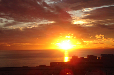 ブレスレットは初日から、東シナ海を臨む沖縄スペースの、毎朝海のエネルギーと、美しい夕日、星空のもとで毎日充電、浄化させていただいた。このスペースがある北谷という町はUFOがよく出現するとのことを聞いた。確かに、宇宙に近いエネルギーを感じる場所である。