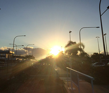 昇る朝日に包まれながらそのまま、パームコーブへと出発。