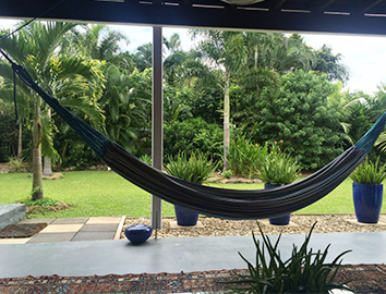お庭は丁寧に手入れされており、大きなヤシの木や南国の草花が蝶々やカラフルな鳥たちを毎日招待して、お庭のハンモックでそんな様子を眺めたり、ガーデンで朝食を楽しんだり、夜空を楽しんだりできるようになっているのです。